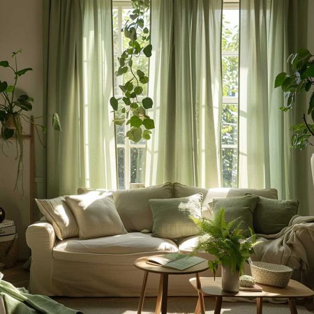- انتخاب پرده با طیف رنگی سبز؛ حس طراوت و آرامش در دکوراسیون تابستانی